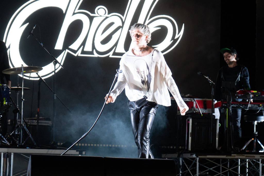 Altro che concerto pop-rap: sabato sera Chiello ha trasformato per qualche minuto Pian di Nave in un’arena rock, chiudendo la sua esibizione con un gesto da vero animale da palco. Al termine di uno show carico di energia e commozione, l’artista lucano classe ’99 ha afferrato l’asta del microfono e l’ha sbattuta con forza sul pavimento, lasciando tutti a bocca aperta. Un finale crudo, istintivo, sicuramente iconico.