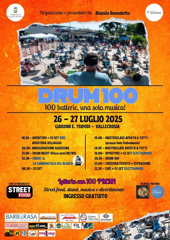 La manifestazione proseguirà nella giornata odierna. Dalle 10 verrà organizzata una masterclass aperta a tutti presso la sala polivalente mentre alle 14.30 verrà proposta una masterclass aperta a tutti nei giardini Erio Tripodi dove alle 19 vi sarà aperitivo con dj set Electroposh; alle 20.30 si terrà Drum 100; alle 22 ci sarà la chiusura dell'evento con l'estrazione della lotteria con 100 premi e, infine, alle 22.30 vi sarà un live di dj set Electroposh. L'evento è organizzato e presentato da Alessio Benedetto con il patrocinio del comune di Vallecrosia.