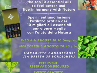 Mercoledì 6 agosto si terrà a Bordighera Alta un incontro esperienziale interattivo sugli Oli Essenziali. Nel corso dell'appuntamento verranno presentate le caratteristiche e le utilità degli oli essenziali CPTG, sigla che garantisce la purezza e l'integrità delle essenze estratte dalle piante.