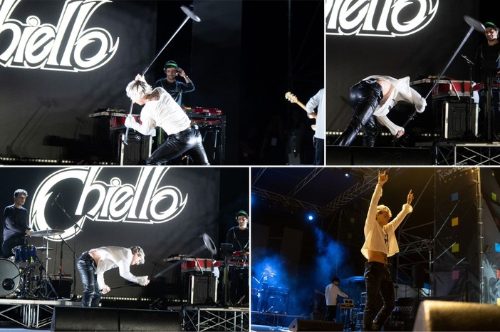 Altro che concerto pop-rap: sabato sera Chiello ha trasformato per qualche minuto Pian di Nave in un’arena rock, chiudendo la sua esibizione con un gesto da vero animale da palco. Al termine di uno show carico di energia e commozione, l’artista lucano classe ’99 ha afferrato l’asta del microfono e l’ha sbattuta con forza sul pavimento, lasciando tutti a bocca aperta. Un finale crudo, istintivo, sicuramente iconico.