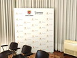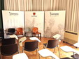 Allestita la sala con tabelloni ed un 'corner' per le interviste