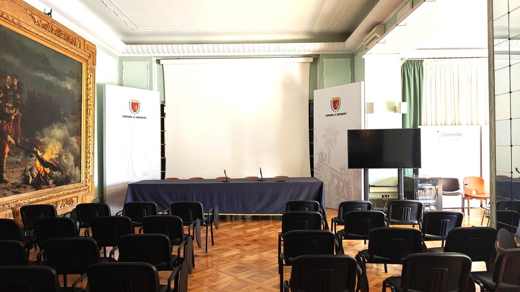 Il comune di Sanremo ha approntato una sorta di sala stampa nella cosiddetta ‘Sala degli specchi’ di palazzo Bellevue, ovvero la prima stanza a destra, quando si entra nell’atrio dell’ente.