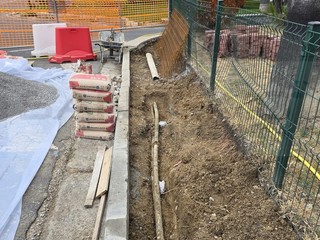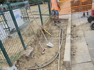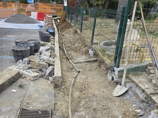 Il cambio totale di tubi e manicotti consentirà di non avere più allagamenti dall’impianto di irrigazione. La massicciata è stata rifatta con rete elettrosaldata per una migliore durata del lavoro, ma è stato anche reso funzionale lo scarico della vaschetta dentro l’area cani, con una nuova colonna di scarico che va a finire nella griglia delle acque bianche.