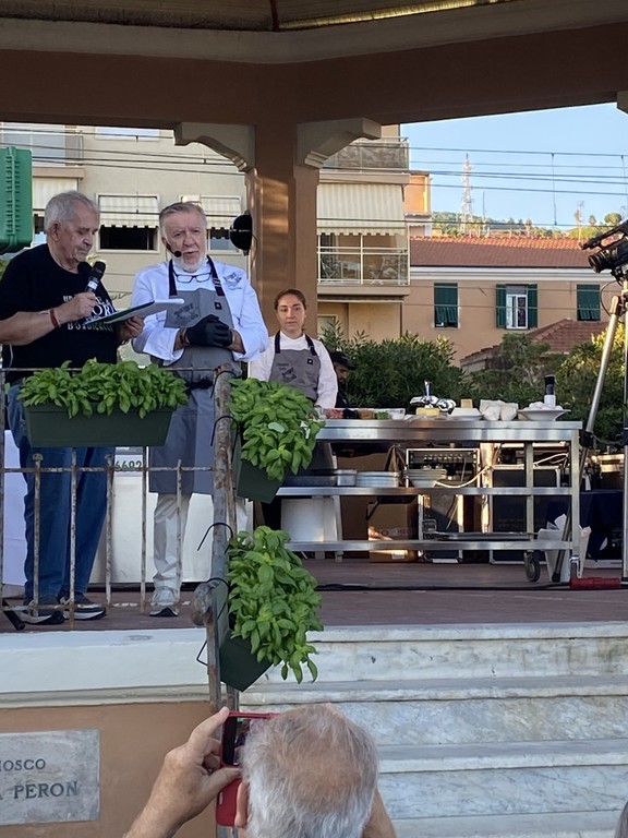A seguire , spazio alla sfida culinaria più appassionante : il Campionato del Pesto , condotto da una vera leggenda del basilico ligure: Roberto Panizza , conosciuto com il Re del Pesto.