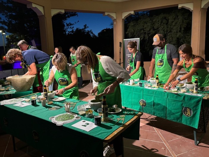 A seguire , spazio alla sfida culinaria più appassionante : il Campionato del Pesto , condotto da una vera leggenda del basilico ligure: Roberto Panizza , conosciuto com il Re del Pesto.