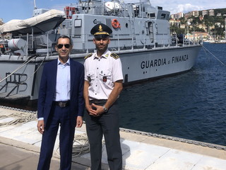Nella mattinata di ieri il Questore di Imperia, dott. Andrea Lo Iacono, ha incontrato il Comandante della Sezione Operativa Navale della Guardia di Finanza di Imperia, Sottotenente Osvaldo Ivan Mastromatteo, a bordo della loro Unità Navale Guardiacoste G78 Ottonelli, ancorata nel porto di Calata Cuneo ed abilitata anche alla navigazione alturiera di proiezione.