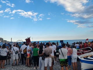La storica competizione con i gozzi liguri sul miglio marino, che rientrava tra gli eventi proposti in occasione della cinquantesima edizione dell'Agosto Medievale, ha visto al giro di boa il Burgu in testa davanti a Campu, Cuventu, Marina, Ciassa e Auriveu. Una classifica che si è confermata anche all'arrivo.
