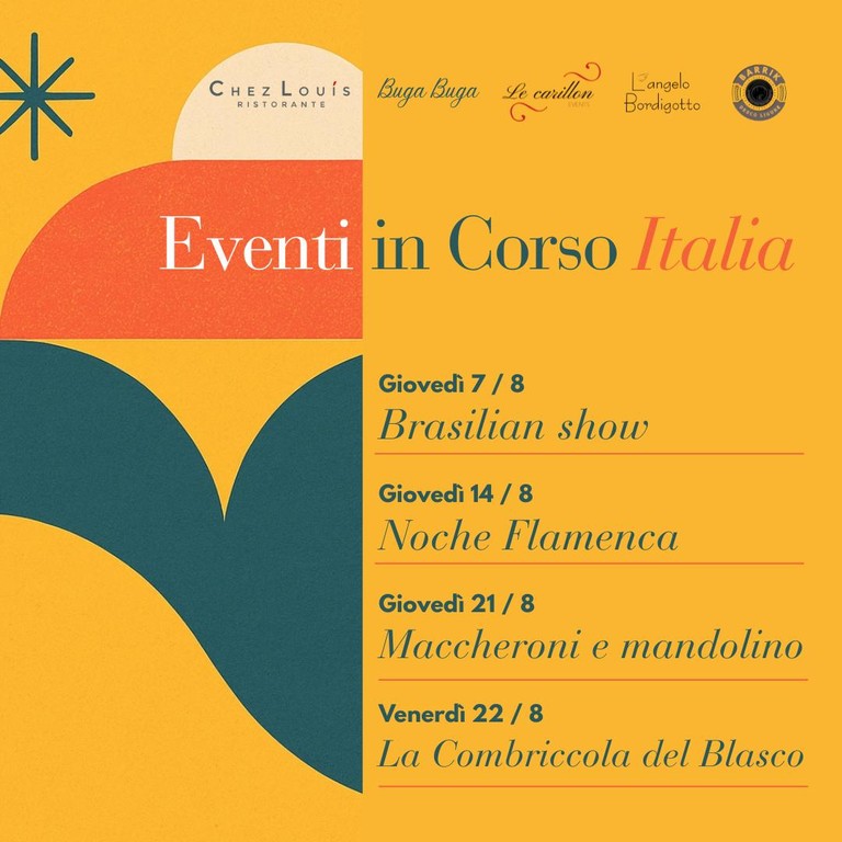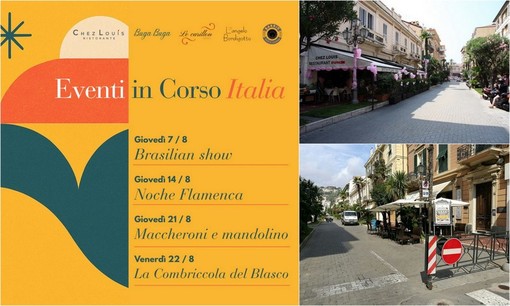 La rassegna serale andrà in scena nell'isola pedonale di corso Italia. "Il primo appuntamento sarà il 7 agosto con Brasilian show" - fanno sapere gli organizzatori - "Giovedì 14 agosto si terrà Noche Flamenca, giovedì 21 agosto Maccheroni e mandolino mentre venerdì 22 agosto andrà in scena il concerto live de La Combricola del Blasco".
