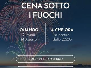 - 14/8 cena sotto i fuochi con musica live del peace Jam duo e a seguire dj set a cura di Magilla dj