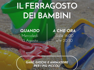 - 13/8 giochi e animazione a partire dal pomeriggio per le famiglie e i più piccoli con il “Ferragosto dei Bambini” a cura di Le Carillon Events