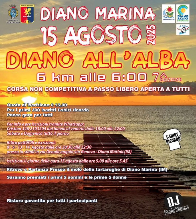 Vista la grande partecipazione, è consigliabile prenotare il proprio pettorale contattando Cristian al numero 3482103204. Diano Marina si prepara così a vivere un’alba speciale, dove ogni passo sarà un inno alla gioia, alla salute e alla bellezza di condividere il cammino.
