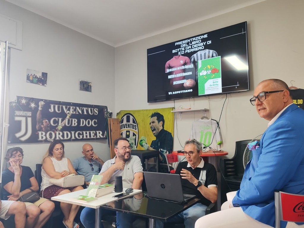 Ico Ferrero presenta "Botte da derby. Quello Juventus-Torino 3-1 del 27 ottobre ‘63 finito in rissa" a Bordighera. Amanti del calcio, tifosi e curiosi si sono ritrovati ieri pomeriggio al bar Gaggio, strapieno per l'occasione, per scoprire il libro incentrato sul derby tra Juventus e Torino del 27 ottobre ‘63 finito in rissa.