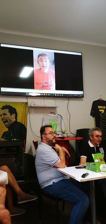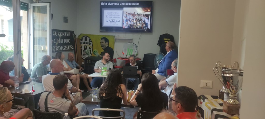 Matteo Lupi, in veste di amico e presidente della Spes di nota fede bianconera, ha accompagnato l'autore nella sua presentazione caratterizzata anche da un collegamento telefonico con Gino Stacchini, ex calciatore della Juventus, ora allenatore di calcio, che avendo partecipato alla partita ha spiegato come è scoppiata la rissa. Il pubblico interessato e attento ha potuto anche ascoltare un videomessaggio del giornalista sportivo della Rai Carlo Nesti. Per l'occasione erano presenti anche il consigliere regionale Veronica Russo e il sindaco di Vallecrosia Fabio Perri.