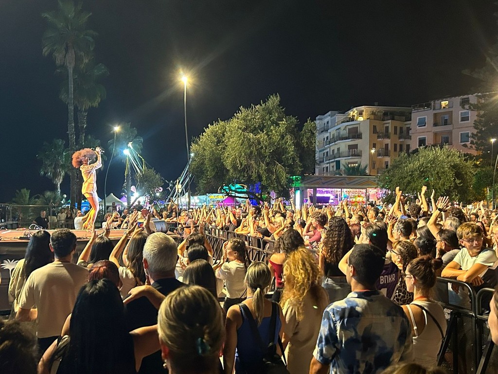 Il penultimo appuntamento della rassegna ha registrato l’ennesimo tutto esaurito, ma con un sapore diverso: quello di una serata capace di unire migliaia di persone in un abbraccio collettivo, tra turisti e residenti, giovani e famiglie. A brillare, insieme ai Bnkr 44 – attesissimi protagonisti – è stato un cast scelto con cura: dalla madrina Fabrizia Santarelli, omaggiata con i fiori di Sanremo, alla voce potente di Yana C, passando per Stefano Mordenti, Gias So What e i Garibaldi, che hanno incendiato il finale accanto a Sappiobeat e ai suoi dj set trascinanti.