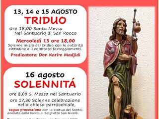 Il 16 agosto, infine, la comunità si riunirà per festeggiare il santo patrono. "In preparazione alla festa patronale di San Rocco, la santa messa, il 15 agosto alle 18, verrà celebrata nel santuario di San Rocco" - fa sapere don Rito, parroco della parrocchia di San Rocco a Vallecrosia - "Il 16 agosto, invece, alle 8 verrà celebrata la santa messa nel santuario mentre alle 17.30 la solenne celebrazione sarà nella chiesa parrocchiale. Seguirà poi la processione con la statua del santo, animata dalla banda di Borghetto San Nicolò, che attraverserà diverse vie della città".