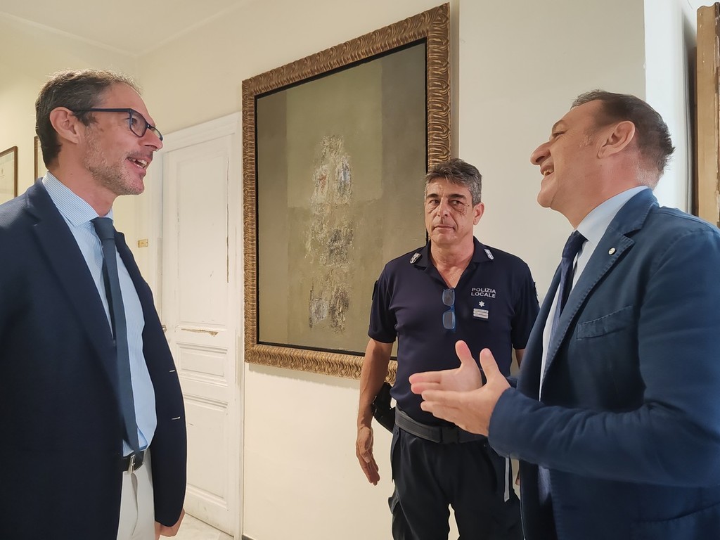 Visita del nuovo prefetto di Imperia, Antonio Giaccari, a Bordighera. Questa mattina si è recato in Comune dove ha incontrato il sindaco Vittorio Ingenito, il vicesindaco Marco Laganà e il consigliere regionale e consigliere comunale Walter Sorriento.