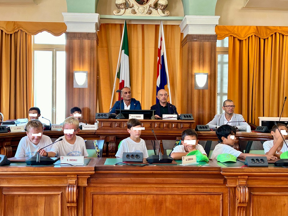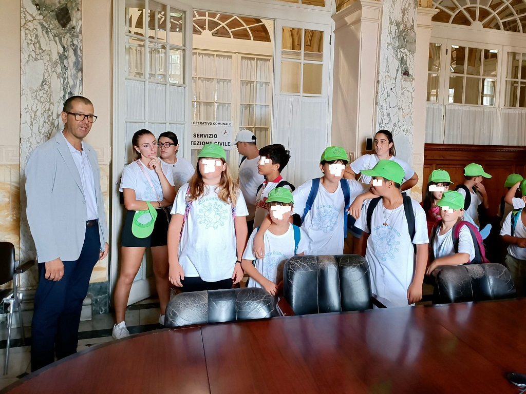Visita questa mattina in Comune da parte dei bambini del centro estivo “A Piedi Nudi”. I bimbi, di età compresa tra i 3 e i 13 anni, sono stati accolti dal sindaco Alessandro Mager, dal vicesindaco Fulvio Fellegara e dal presidente del Consiglio comunale Alessandro Il Grande.