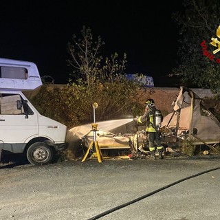 Taggia: roulotte abbandonata davanti all’ex caserma dei Carabinieri in fiamme, nessun ferito (Foto)
