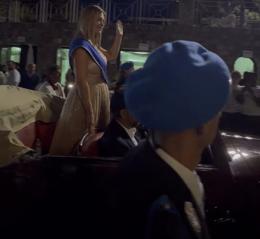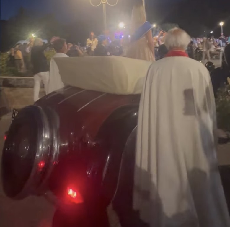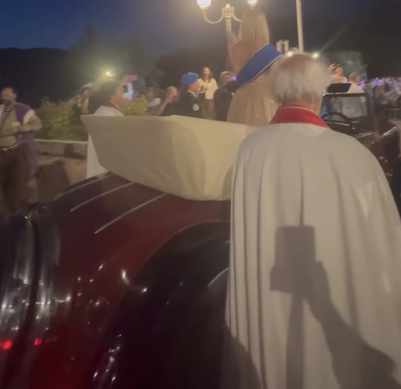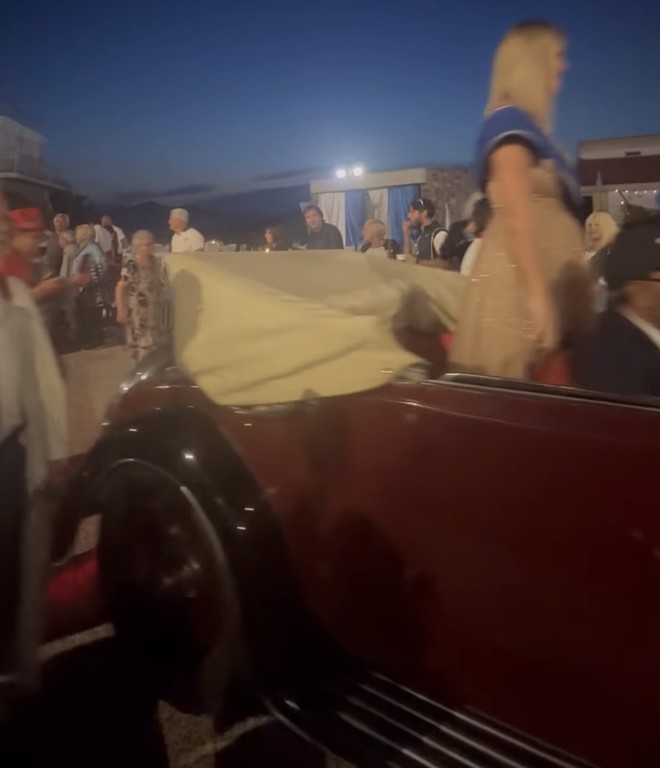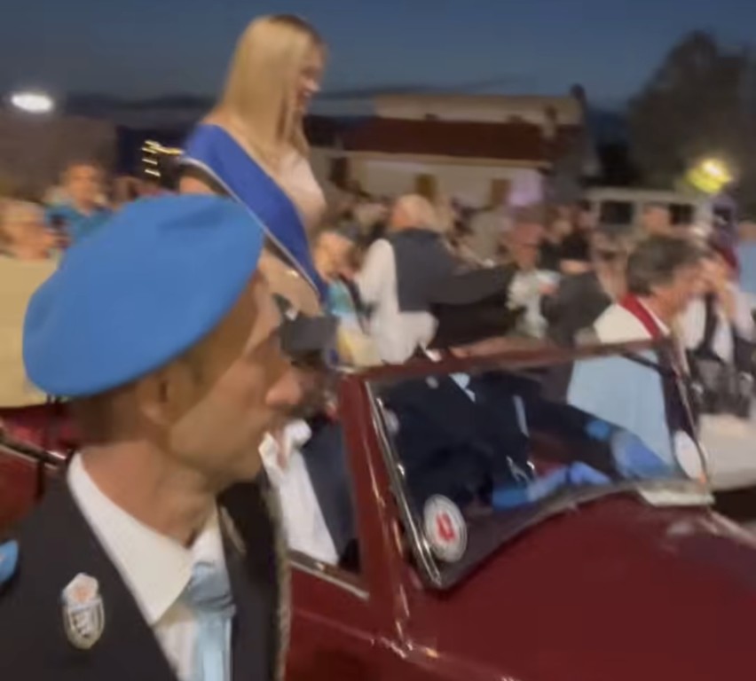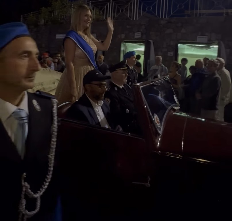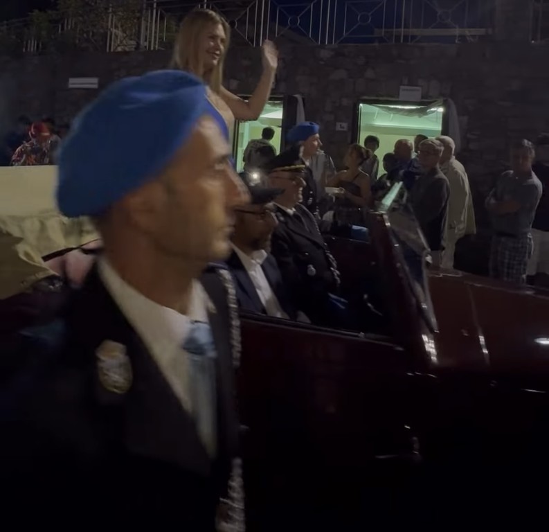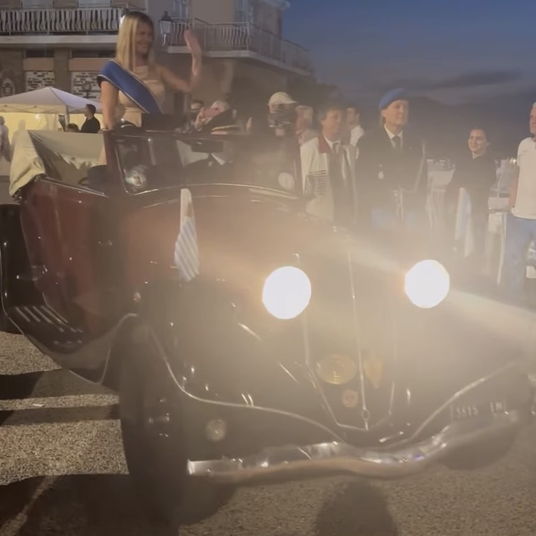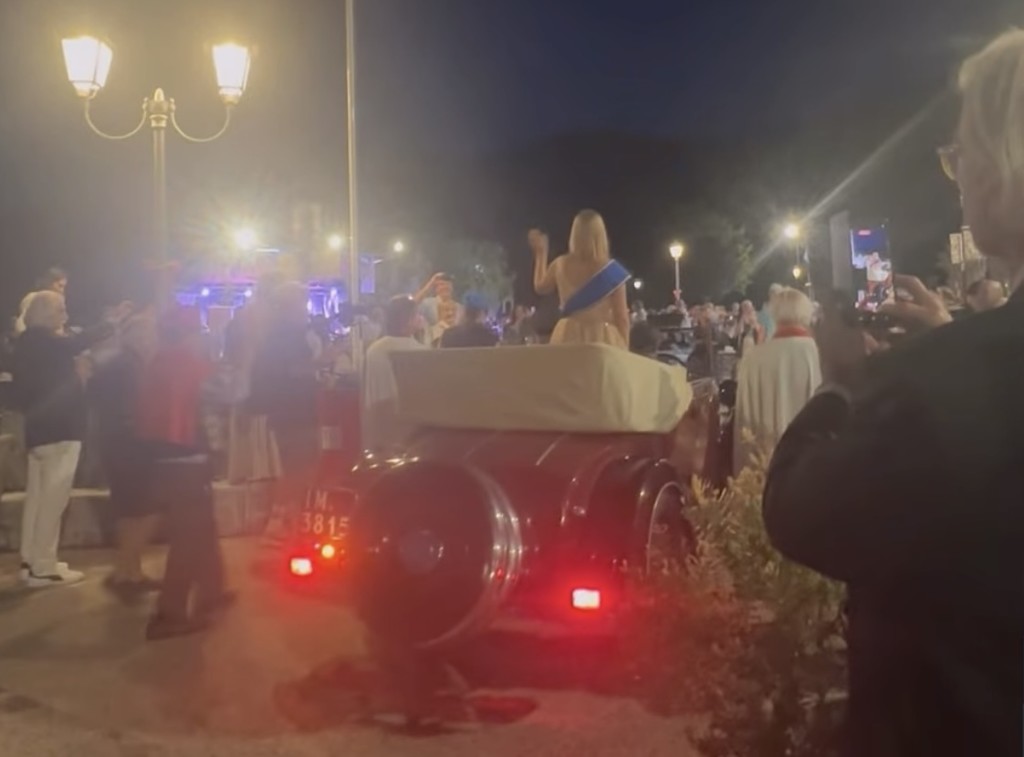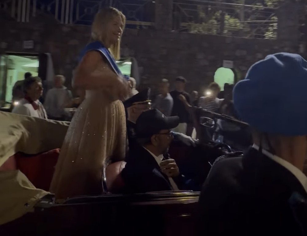 "Verso le 21, la principessa Nina ha fatto il suo ingresso in piazza a bordo di una splendida Lancia Artena Cabriolet Garavini del 1934 con tanto di 'bandierine diplomatiche'” tipiche delle auto dei capi di Stato. L’auto è stata gentilmente messa a disposizione dalla famiglia Lamberti-Rivella. Nel suo percorso verso la piazza la Principessa è stata scortata dai consiglieri della Corona, dai Priori, dalle Guardie, dai bambini del Mini Consiglio della Corona e dai figuranti del Sestiere Burgu di Ventimiglia con i loro abiti storici" - raccontano.