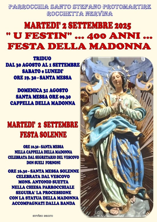 Una ricorrenza che puntualmente si ripropone annualmente dal 1625. "Il 2 settembre 2025 questo comune celebrerà i 400 anni della tradizionale festa denominata 'U Festin'" - fa sapere il sindaco di Rocchetta Nervina, Claudio Basso, unitamente ai responsabili delle associazioni che partecipano attivamente all’organizzazione della manifestazione - "Il 2 settembre 1625 a Rocchetta Nervina si verificò un evento significativo nel contesto di un conflitto più ampio tra il Ducato di Savoia e la Repubblica di Genova, due potenze che si contendevano l’influenza in questa regione strategica dell’attuale Liguria, vicino al confine franco-italiano. Rocchetta Nervina, un piccolo villaggio medievale situato nella val Nervia, era allora sotto l’influenza dei Doria, una potente famiglia nobile genovese, e si trovava al centro delle tensioni tra queste fazioni. Quel giorno, secondo la tradizione locale ancora celebrata oggi, il villaggio fu assediato e incendiato dalle forze dei Doria di Dolceacqua, nell’ambito di una guerra più vasta che coinvolgeva anche la Francia, alleata dei Savoia, e la Spagna, sostenitrice di Genova. Questo scontro s'inseriva nelle guerre italiane del XVII secolo, esacerbate dalle rivalità per il controllo della Contea di Nizza e delle vie di comunicazione alpine. Gli abitanti di Rocchetta Nervina, presi nel mezzo di questo conflitto, videro il loro villaggio devastato dalle fiamme, una scena drammatica immortalata in un dipinto del 1626 conservato nell’Oratorio della Santissima Annunziata. Questa tela rappresenta l’apparizione della Vergine Maria, che, secondo la leggenda, intervenne miracolosamente provocando una pioggia salvatrice per spegnere l’incendio e salvare il villaggio. L’evento è diventato parte integrante dell’identità locale. Ogni anno, il 2 settembre, Rocchetta Nervina celebra 'U Festin', una festa in onore di questo episodio, in cui si commemora la protezione divina attribuita alla Vergine. La guerra del 1625, sebbene un conflitto regionale, rifletteva le lotte di potere europee dell’epoca, e Rocchetta, con la sua posizione fortificata tra i torrenti Barbaira e Oggia, era un obiettivo militare non trascurabile. Le cronache storiche riportano combattimenti intensi, saccheggi e distruzioni, ma è il racconto di questa sopravvivenza miracolosa che è rimasto nella memoria collettiva. In sintesi, il 2 settembre 1625 a Rocchetta Nervina fu un giorno di crisi in cui il villaggio subì un attacco devastante, seguito da una liberazione attribuita a un intervento soprannaturale, un episodio che intreccia storia e tradizione ancora vivo nella cultura locale di oggi".