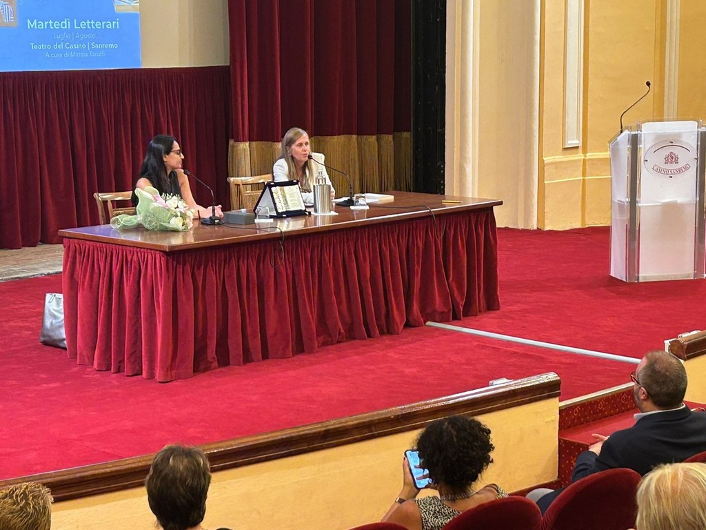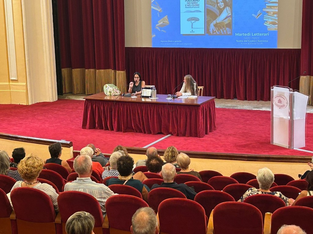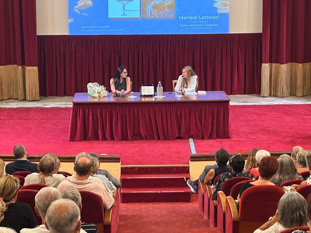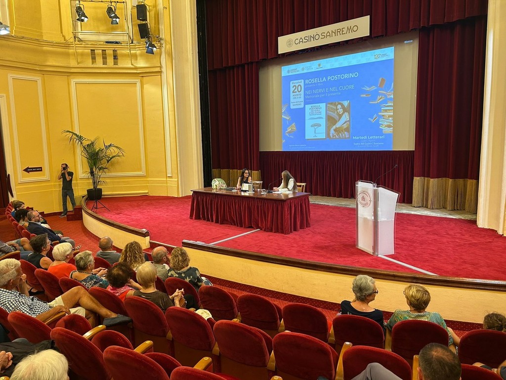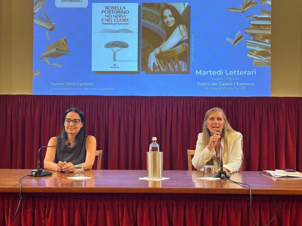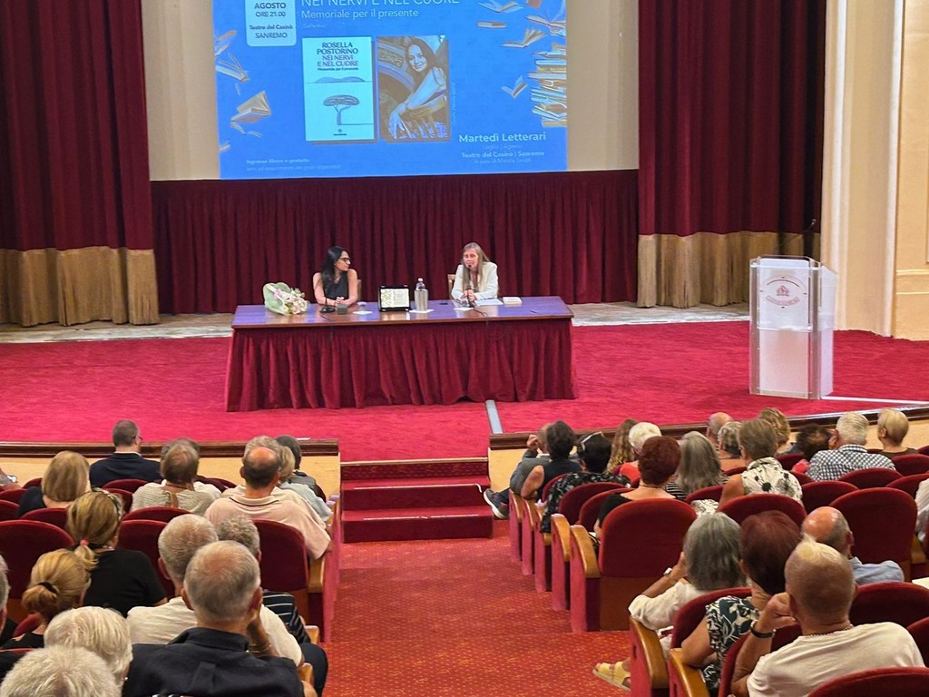 Una serata di grande intensità letteraria ha animato ieri sera il teatro del Casinò di Sanremo, dove i Martedì Letterari sotto le stelle hanno ospitato Rosella Postorino, una delle voci più autorevoli della narrativa contemporanea. La scrittrice, originaria di San Lorenzo al Mare e oggi residente a Roma, ha presentato al pubblico il suo ultimo lavoro, “Nei nervi e nel cuore” (Solferino), dialogando con la curatrice della rassegna Marzia Taruffi.