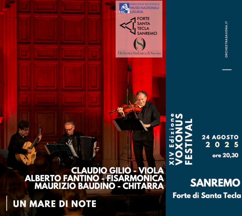 Domenica 24 agosto, alle ore 20.30, il Forte di Santa Tecla ospita un nuovo appuntamento del Voxonus Festival, la rassegna curata dall’Orchestra Sinfonica di Savona in collaborazione con la Direzione Regionale Musei Nazionali Liguria – Forte Santa Tecla.