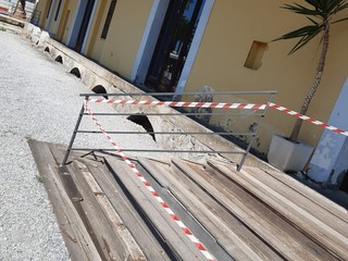 Le gradinate in legno della sede del Club Tenco, all’ex scalo merci della vecchia stazione di Sanremo, sono state momentaneamente chiuse al transito a causa dell’usura del tempo e di alcune assi deteriorate. Per motivi di sicurezza l’area è stata transennata con nastro colorato in attesa dei lavori di sistemazione.