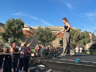 Ad accoglierla c’erano già i suoi fan più fedeli, alcuni dei quali hanno raggiunto la piazza alle 9 del mattino per assicurarsi il posto migliore e vivere da vicino ogni momento della giornata. La loro lunga attesa è stata ripagata dalle prime note durante le prove, che hanno trasformato il pomeriggio in un assaggio di ciò che sarà il gran finale della rassegna.