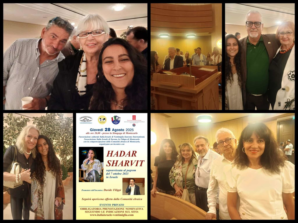 Sopravvive al pogrom del 7 ottobre 2023 in Israele fingendosi morta. Hadar Sharvit racconta la sua esperienza presso la sinagoga Edmond Safra di Montecarlo. Un interessante e coinvolgente evento organizzato, ieri, dall’associazione culturale Italia Israele Ventimiglia Sanremo International unitamente alla Fidapa di Montecarlo, all’associazione Italia Israele di Savona e alla comunità ebraica di Monaco.
