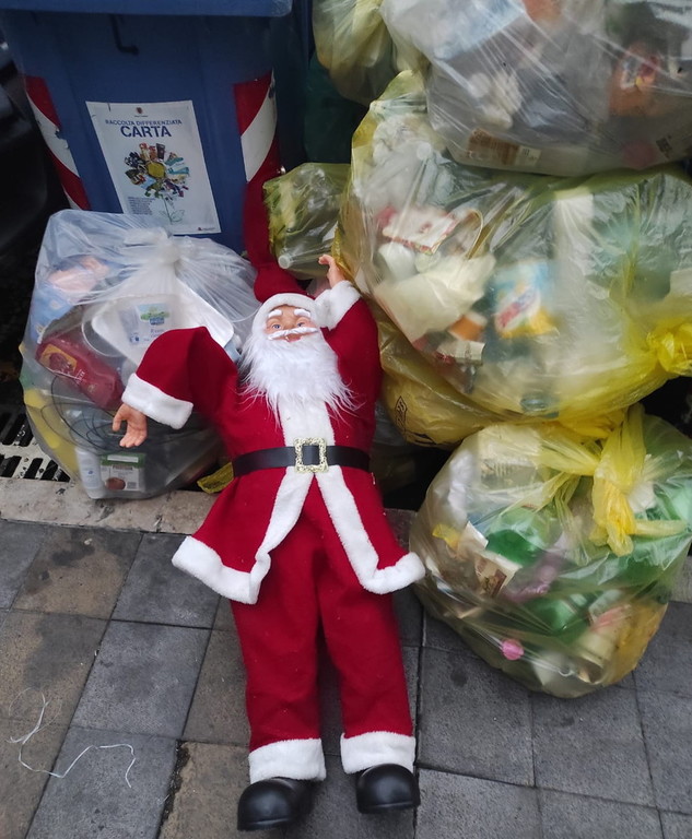 Sanremo: conferimento 'selvaggio' dei rifiuti in città, in via Martiri spunta anche un Babbo Natale fuori stagione (Foto)