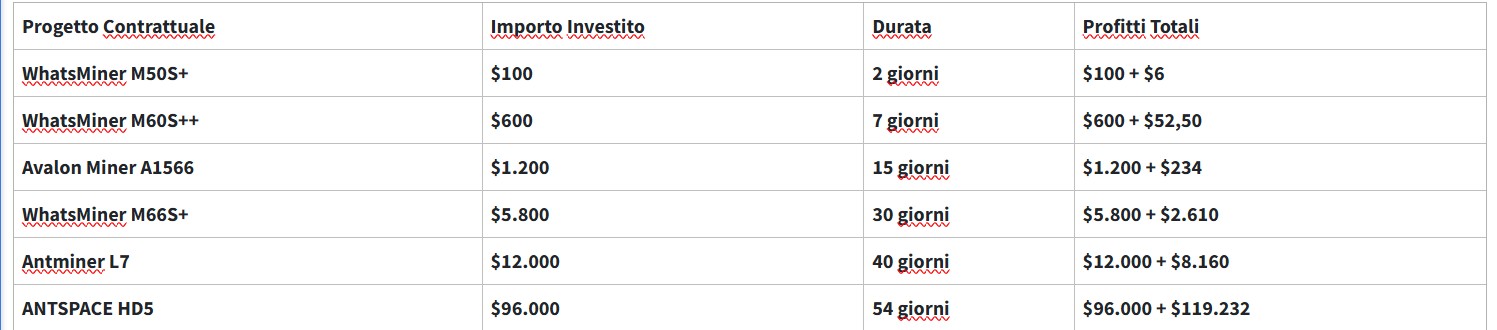 Attivazione immediata: i contratti diventano attivi subito e i guadagni vengono distribuiti ogni 24 ore.