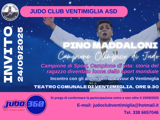 Il giorno successivo, mercoledì 24 settembre alle ore 9.30, il Teatro Comunale di Ventimiglia ospiterà un incontro speciale con gli studenti dell’Istituto Comprensivo Cavour. “Pino Maddaloni, Campione di Sport, Campione di Vita” sarà il titolo dell’intervento, in cui il judoka racconterà la propria storia: quella di un ragazzo cresciuto in un quartiere difficile di Napoli, che grazie alla disciplina e ai valori del judo è riuscito a diventare un’icona dello sport mondiale. Un’occasione preziosa per trasmettere ai più giovani esempi concreti di resilienza, passione e realizzazione personale.