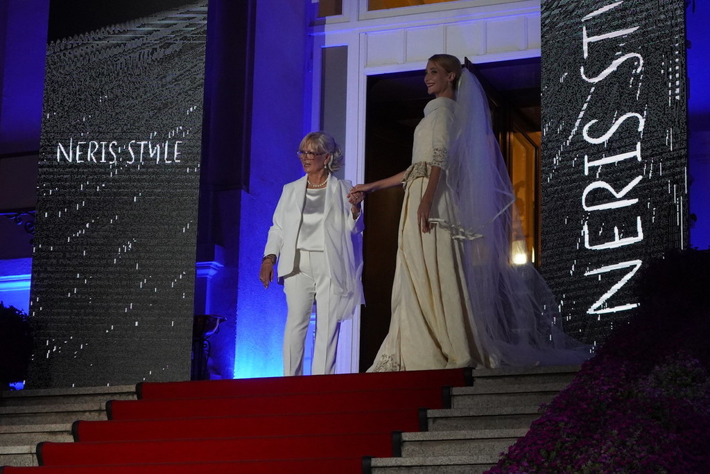 La sfilata di moda è stata intervallata da momenti musicali e coreografici in cui sono stati valorizzati gli abiti di alta moda realizzati dai partecipanti al Premio Festival dell’Alta Sartoria Ecosostenibile 2025.