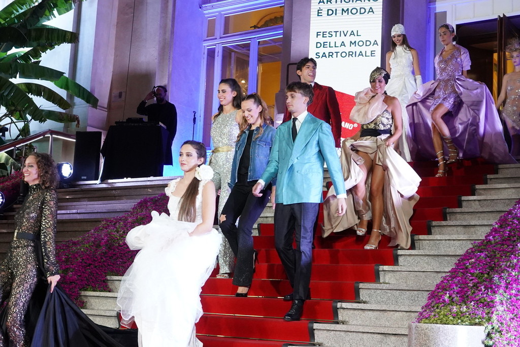 Eleganza, sostenibilità e creatività artigianale. Le eccellenze sartoriali italiane protagoniste di una suggestiva sfilata di alta sartoria sulla scalinata del Casinò di Sanremo dove, ieri sera, è, infatti, andato in scena Stile Artigiano è di Moda, il Festival della Moda Sartoriale.