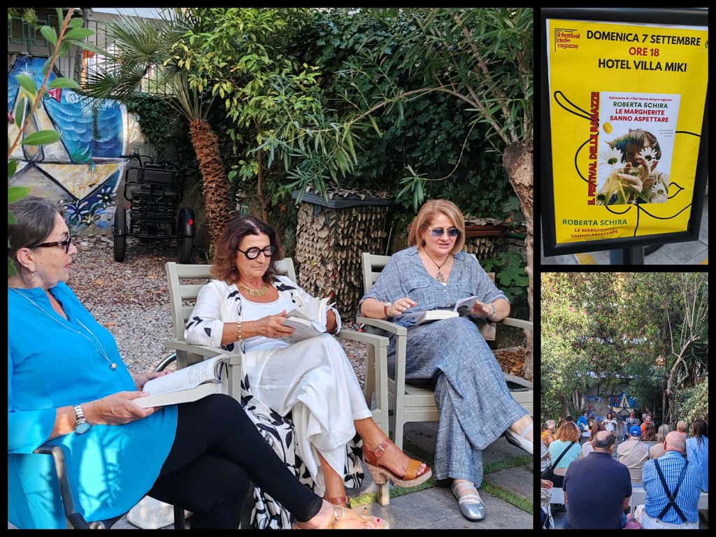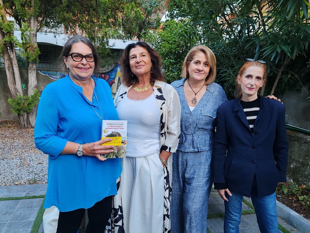 Roberta Schira incanta il pubblico al Festival delle Ragazze a Bordighera. La critica gastronomica e scrittrice, in serata, ha presentato nel giardino dell'hotel Villa Miki il suo ultimo successo: "Le margherite sanno aspettare" (Garzanti), un romanzo intenso che intreccia sentimenti, memoria e rinascita. L’incontro è stato condotto da Raffaella Fenoglio e accompagnato dalle letture a cura di Barbara Bonavia, attrice e consigliere comunale.