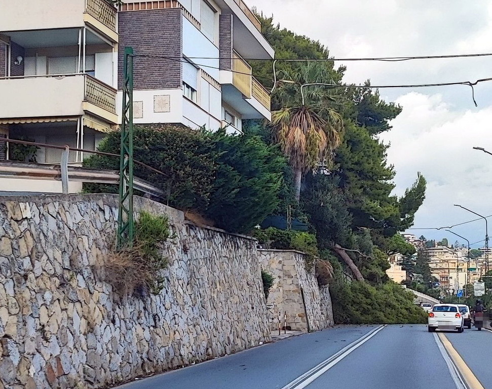 Sanremo: tragedia sfiorata questo pomeriggio in corso Marconi, grosso pino invade ben due carreggiate (Foto e Video)