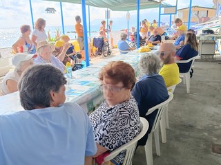 Inoltre, i partecipanti hanno potuto degustare una merenda. "Siamo stati felici di aver accolto gli ospiti di Casa Rachele nella nostra sede dove hanno fatto merenda, un po' di conversazione e un bagnetto visto che grazie alla passerella hanno potuto raggiungere il mare, anche chi era in sedia a rotelle" - commenta Flavio Ambrosino dell'associazione nazionale Marinai d'Italia sezione di Vallecrosia - "Siamo sempre disponibili a mettere a disposizione delle associazioni locali la nostra sede per le loro attività, speriamo che giornate simili si potranno ripetere più spesso".