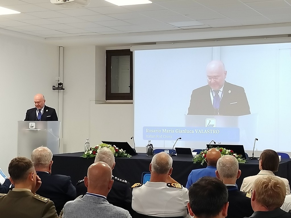 Ha preso poi la parola il presidente dell'istituto, il generale in congedo Giorgio Battisti: "Siamo orgogliosi di dare a tutti voi il benvenuto al tavolo del diritto umanitario. Il nostro obbiettivo è sottolineare l'importanza della dignità umana anche durante i conflitti. Dalla fondazione ci siamo prodigati in questa direzione. La tavola rotonda mira a questa missione, accogliendo figure illustri per un confronto in merito. Esprimo la mia gratitudine per il supporto ricevuto nella preparazione di questa conferenza. Il Comune di Sanremo, la Regione e tutti gli altri attori che hanno contribuito. Vi ringrazio e vi do il benvenuto qui a Sanremo".