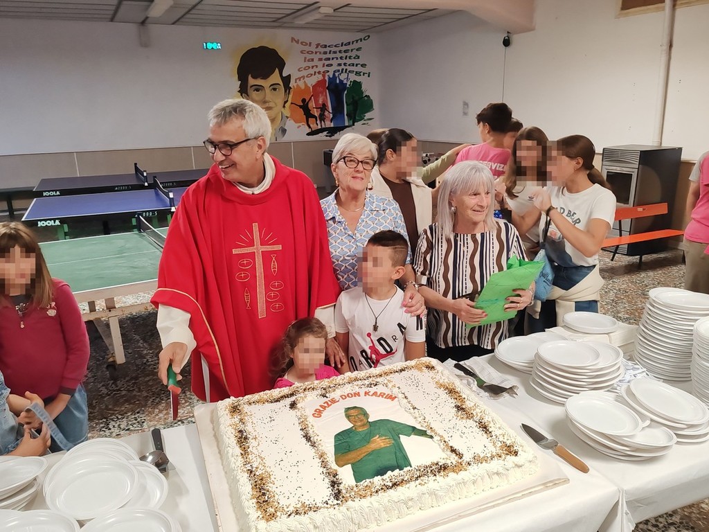 "Ho dato e ho ricevuto tanto" - afferma don Karim - "Vi lascio un'immaginetta della mia ordinazione avvenuta nel 1992. Oggi ho voglia di regalarla a tutti voi. Dice: 'Seguitemi, vi farò pescatori di uomini'. Tante persone che insieme tirano è il mio augurio a voi: di continuare insieme a pescare".