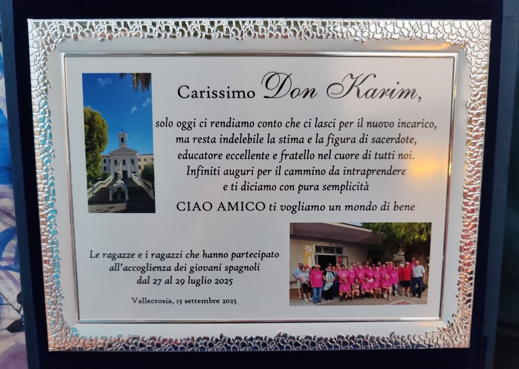 "Grazie don Karim per tutto quello che hai fatto e soprattutto per la passione, dedizione, disponibilità, accoglienza, sensibilità e amore. Sei un bravo parroco, alla portata di tutti, sempre presente e attento, con il sorriso, ai bisogni di chiunque si rivolge a te. Lasci in ognuno di noi un ricordo indelebile. Ti vogliamo bene, tanto bene". Con queste parole, lette da Luisella, la 'nonna dell'Oratorio', Vallecrosia saluta don Karim Marco Madjidi, l'amato parroco della parrocchia di Maria Ausiliatrice che è stato trasferito a Roma.