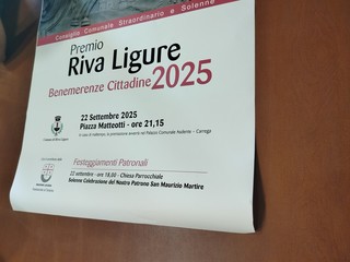 Il Premio Riva Ligure 2025 sarà conferito alla Regione Liguria per il progetto “Eventi Autentici”, un’iniziativa che promuove e valorizza le tradizioni del territorio. Un premio che sarà ritirato dall'assessore regionale al turismo Luca Lombardi.