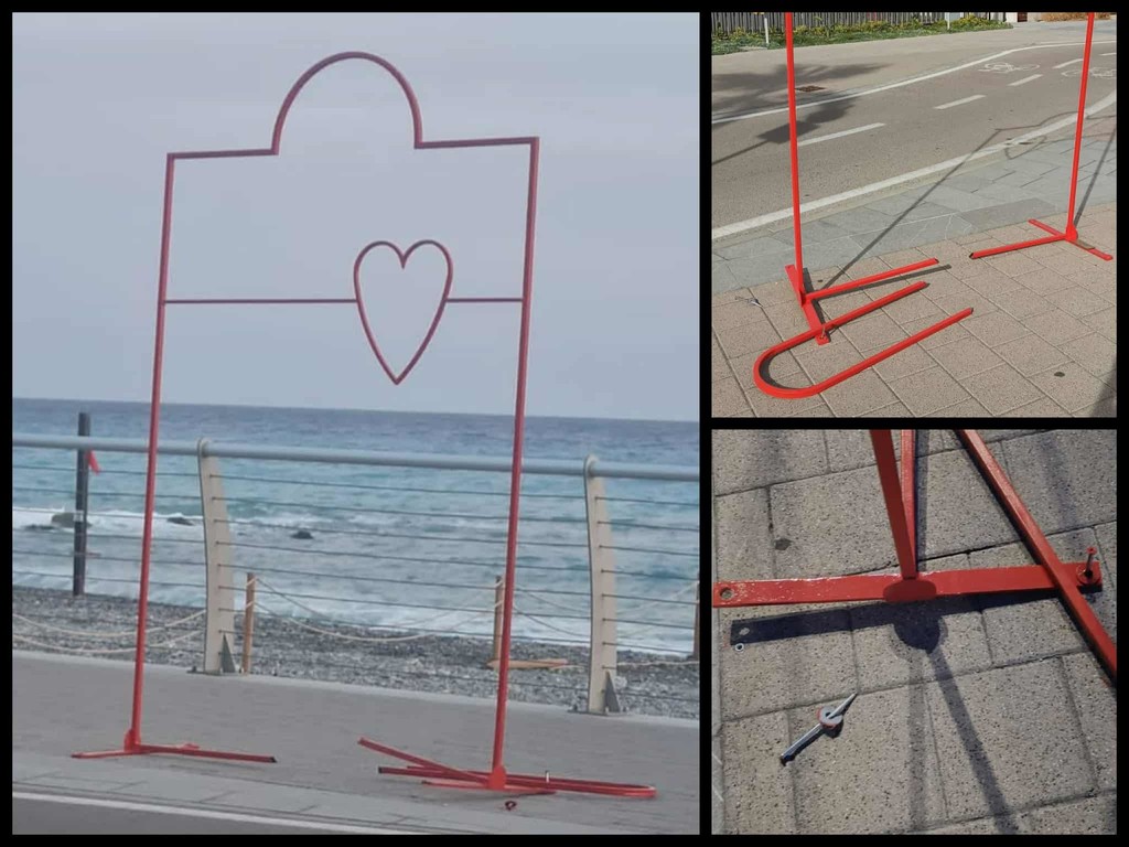 Vallecrosia, danneggiata l'opera dell'artista Andrea Iorio installata sul lungomare: è la seconda volta (Foto)