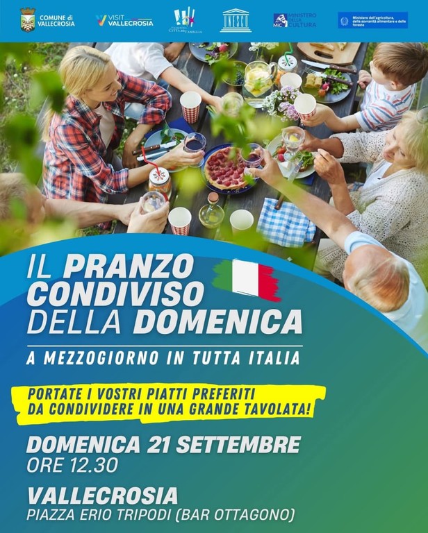 "Ognuno porterà il suo piatto della domenica per trascorrere piacevolmente un momento di convivialità all'italiana" - spiega Muratore - "Sarà l'occasione per aderire all'iniziativa del Ministero della Cultura a sostegno della candidatura de 'il pranzo della domenica' a bene immateriale dell'umanità alla prossima riunione dell'Unesco. Vicinanza, cittadinanza, convivialità e tanta voglia di stare insieme in un ultimo pic-nic d'estate".