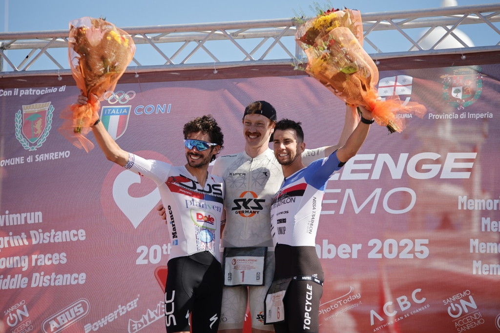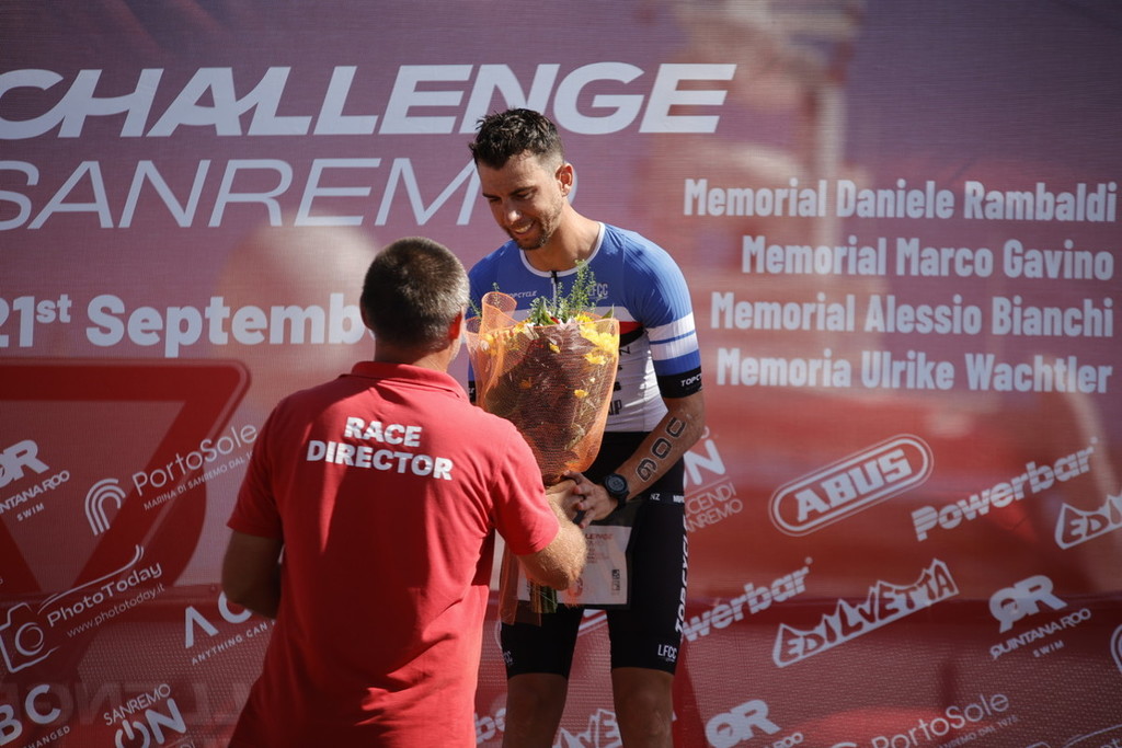 Alla prima partecipazione al Challenge Sanremo, Leonard Arnold centra uno strepitoso successo nella quarta edizione del triathlon internazionale su distanza media. Il tedesco, davvero incontenibile nella frazione ciclistica, domina in 3h55’49”, e precede sul traguardo di Portosole l’azzurro Michele Sarzilla (3h58’57”) e il francese Thomas Navarro (4h00’50”).