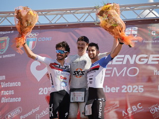 Il pubblico italiano sogna: Sarzilla ci prova in tutti i modi e lunga la mezza maratona sulla pista ciclopedonale della Riviera dei Fiori, riduce il distacco fino a circa 1’30”, ma il tedesco resiste e difende questo prezioso successo. Grande giornata anche per Navarro che disputa un’ottima frazione di corsa che gli consente di salire sul podio. Quarto posto per Joost Friderichs alla sua prima stagione da atleta pro.