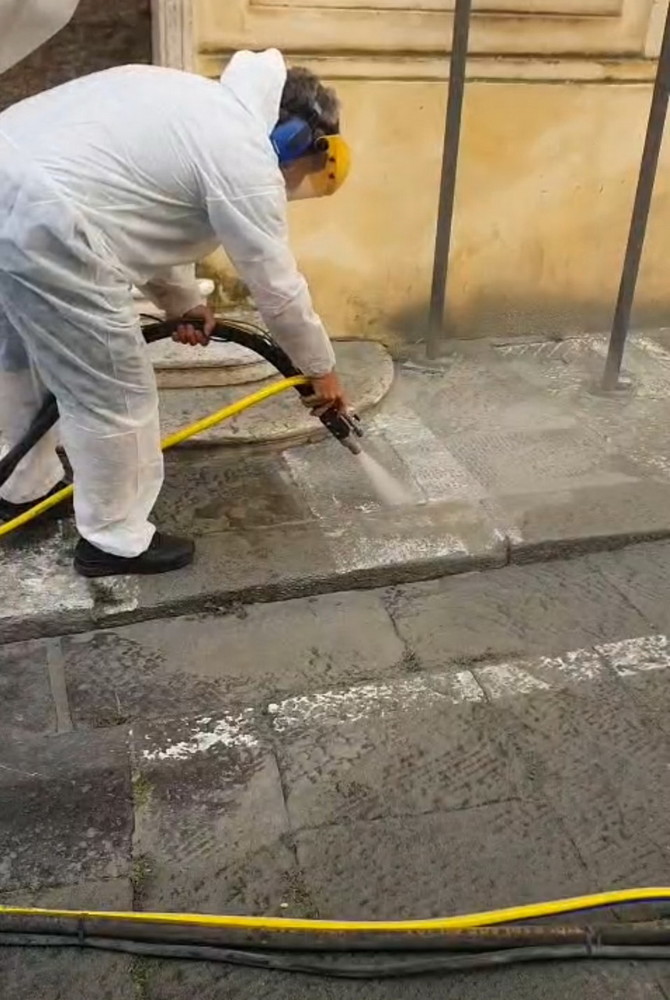Sono in corso in piazza Nota a Sanremo le operazioni di rimozione della segnaletica orizzontale. La squadra di pronto intervento del Comune sta infatti eliminando le tracce che, prima della pedonalizzazione dell’area, delimitavano i parcheggi e le zone adibite a carico scarico. In tale maniera sul selciato non rimarrà alcun segno e sarà visibile solo la pavimentazione originale, con un’immagine nuova più armonica, ordinata ed accogliente.