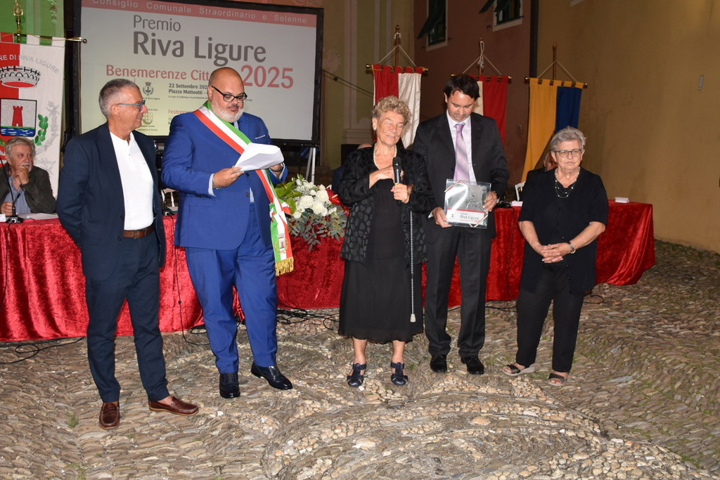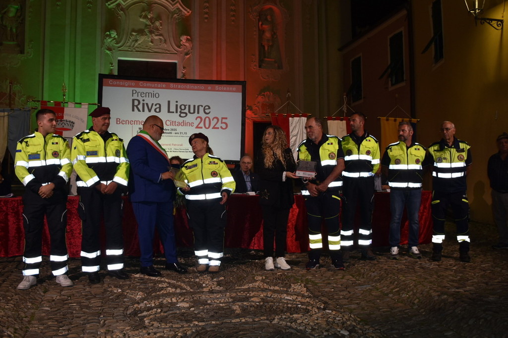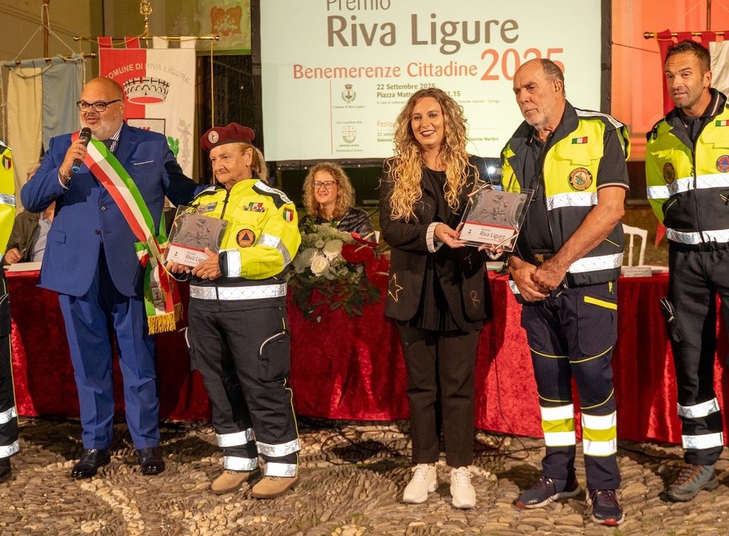 Sul palco sono saliti il GS Riva Ligure e l’Asd Fudoshin Karatè Liguria, premiati per la diffusione dei valori sportivi; il Gruppo allestimento Carri fioriti Fiormiche e l’Associazione Delfini del Ponente APS, per il sostegno a cultura e socialità. Riconoscimenti anche alla Fidas, rappresentata da Italia Di Blasio e Leonardo Ballarini, al Gruppo Alpini Riva-Santo Stefano e alle associazioni di protezione civile Valli Argentina Armea Taggia e Riviera dei Fiori Pompeiana, oltre che alla Confraternita dell’Oratorio di San Giovanni Battista. Un momento particolarmente emozionante è stato il premio conferito a Beatrice Covini, la giovane che il 22 luglio scorso si è resa protagonista di un coraggioso intervento di soccorso in mare.