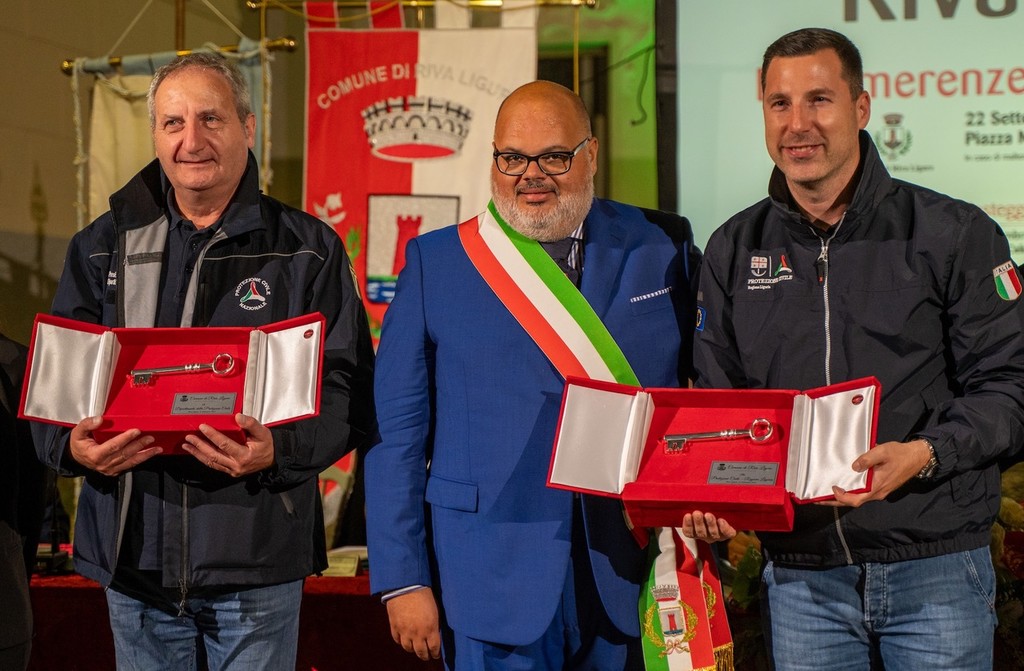 Il momento più significativo della serata è stato il conferimento della cittadinanza onoraria al Dipartimento della Protezione Civile nazionale e regionale, riconoscimento che testimonia la profonda gratitudine della comunità di Riva Ligure verso chi, ogni giorno, garantisce sicurezza, prevenzione e supporto nei momenti di emergenza. A consegnare l’onorificenza, il sindaco Giorgio Giuffra insieme al Viceprefetto Aggiunto Anna De Paola, responsabile per la Protezione Civile. A ritirare le chiavi della città, simbolo della cittadinanza onoraria, sono stati Natale Mazzei, Vice Capo Dipartimento Protezione Civile, e Giacomo Giampedrone, Assessore regionale alla Protezione Civile.