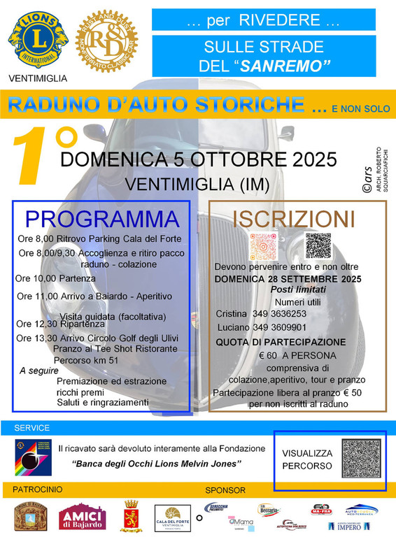 Intanto, fervono i preparativi per il tour automobilistico che attraverserà le strade panoramiche del Ponente ligure, rievocando il fascino delle competizioni storiche e valorizzando il patrimonio paesaggistico e culturale del territorio. L’evento si concluderà con un pranzo al ristorante del Golf Club di Sanremo, aperto anche a chi non partecipa al tour con le auto. Sarà un momento di festa e condivisione, arricchito da una premiazione con ricchi riconoscimenti per i partecipanti.