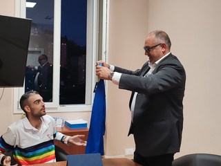 Il sindaco Fabio Perri, il vicesindaco Cristian Quesada, l'assessore Deborah Mognol e i consiglieri comunali Mattia Petrini, Rocco Luccisano e Rocco Noto hanno accolto l'atleta in Comune dove gli hanno consegnato la targa. "Siamo onorati di poter testimoniare questo titolo che Diego ha ottenuto pochi giorni fa che è quello di campione del mondo di petanque. Un piccolo riconoscimento per un giovane cittadino che continua a portare in alto, e in giro per il mondo, il nome di Vallecrosia" - dice il sindaco Fabio Perri - "Vogliamo esaltare e incentivare questo sport, che a volte non viene tanto considerato. Stiamo, infatti, pensando di organizzare a Vallecrosia un grande evento di petanque".